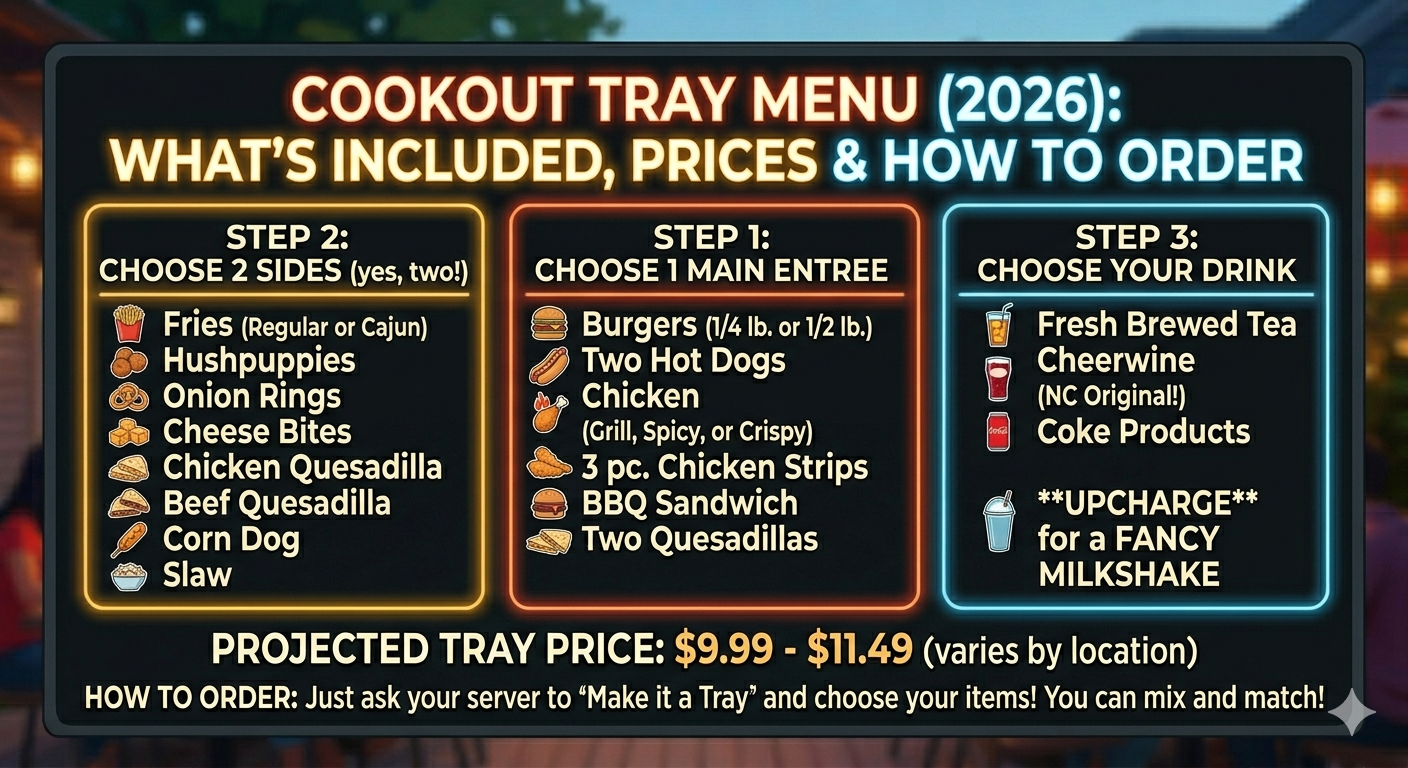 Pro tip: If the drive-through line is long, use that time to review the full Cookout Tray menu on the official Cookout website or a menu info site before you reach the speaker. It saves time and makes the experience smoother.